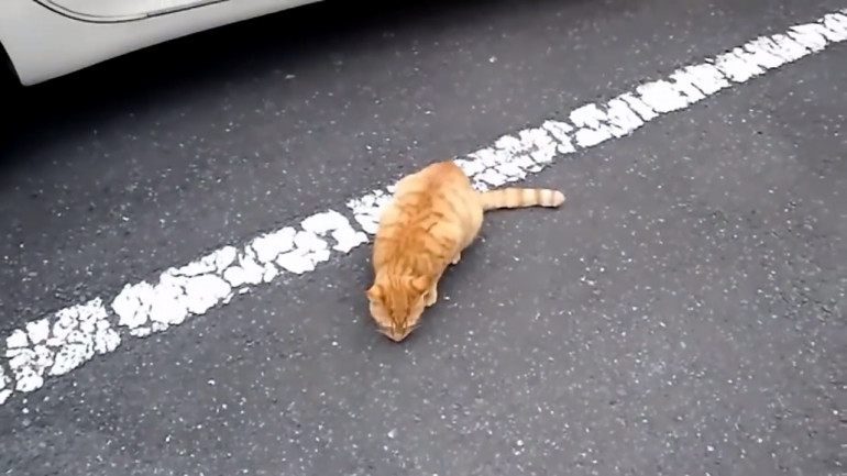 一瞬固まるネコちゃん。