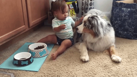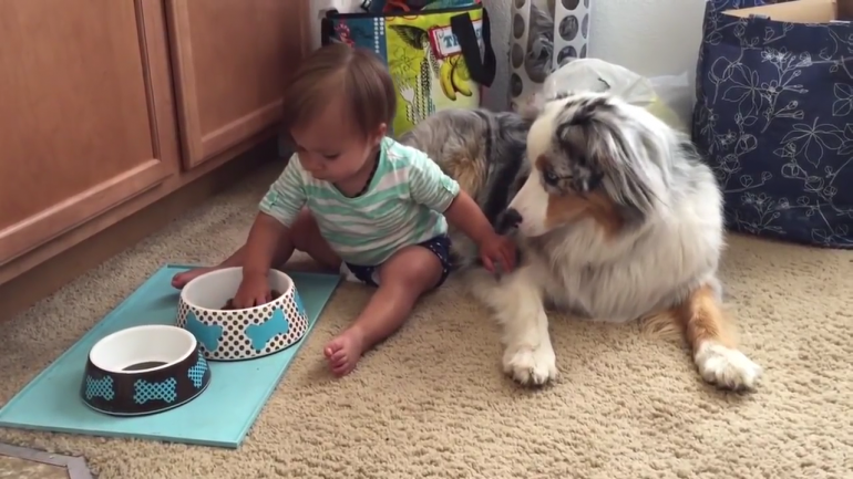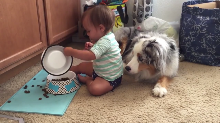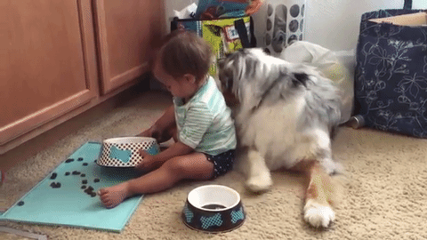 お手伝いのはずが、ドッグフードで遊びはじめる男の子(゚д゚)