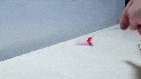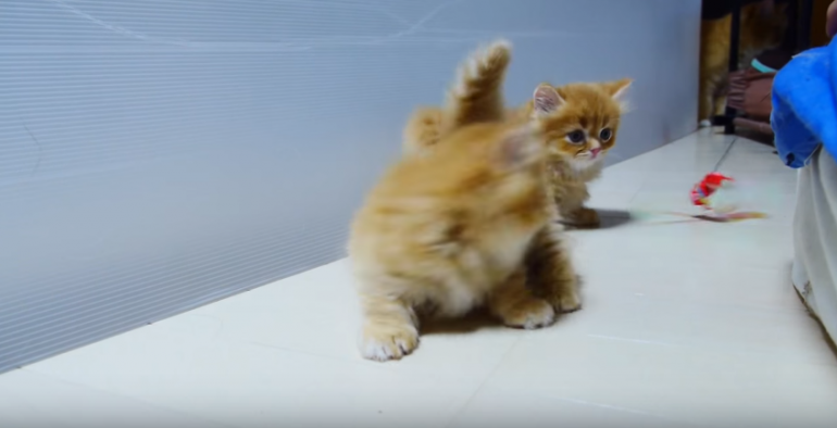 飼い主さんに動くおもちゃで遊んでもらっているようです。