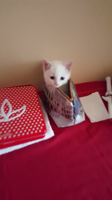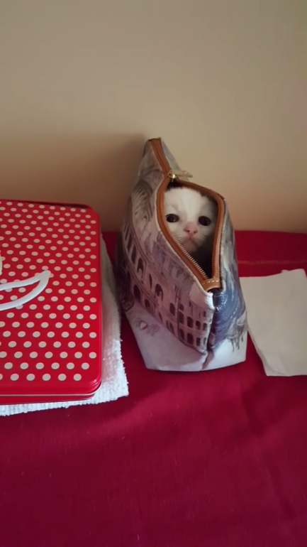 お気に入りのポーチでひょこひょこ遊ぶ無邪気なこねこちゃん♡