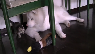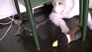 子猫ちゃんが安心して遊べるのは天天ちゃんのおかげかも?