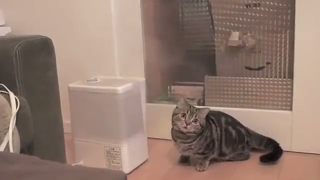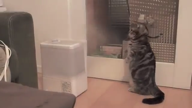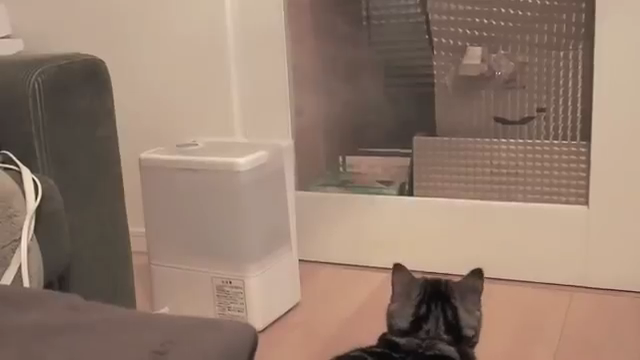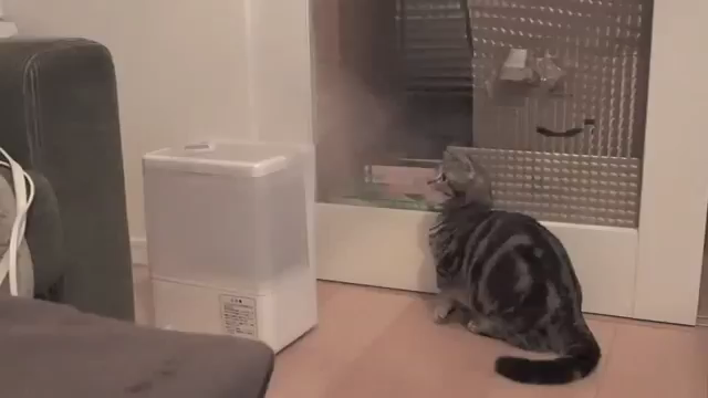 いくらパンチをしても触れない蒸気に、目をまんまるくして、キョトン。