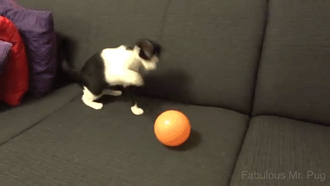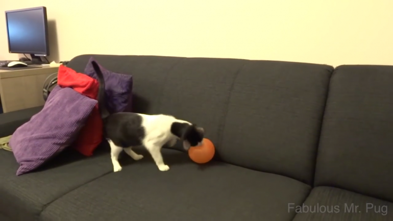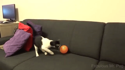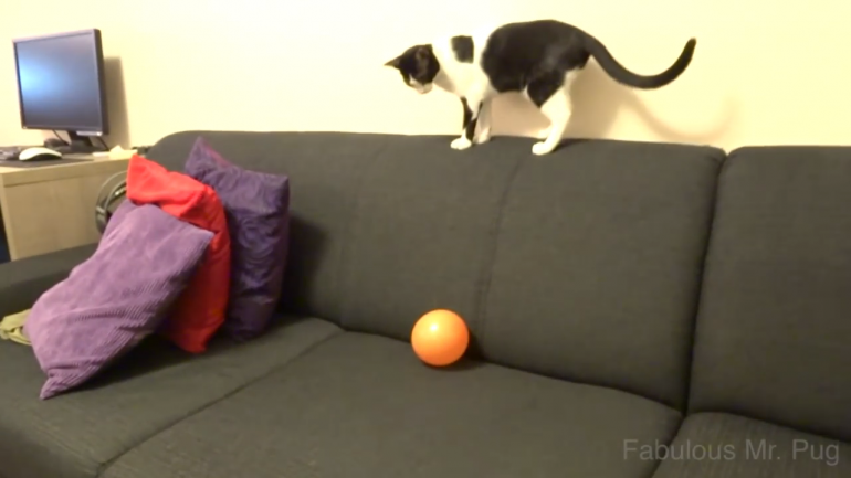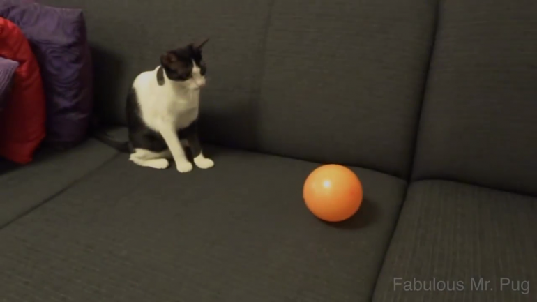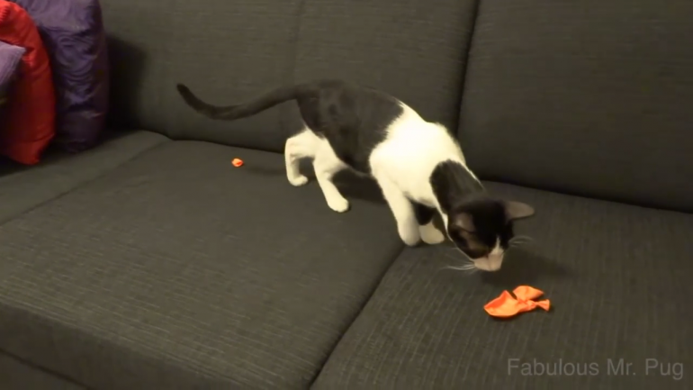 少々逃げ腰になりながら、かる~い猫パンチで風船の様子をうかがいます。