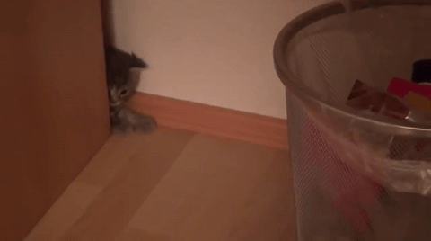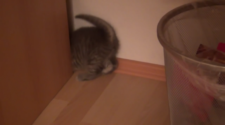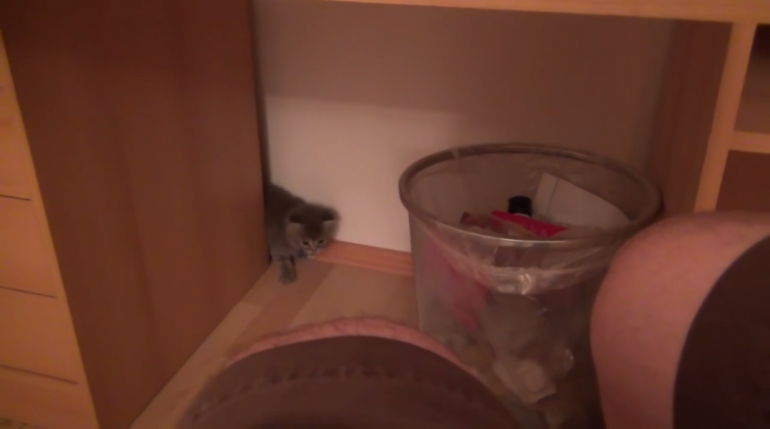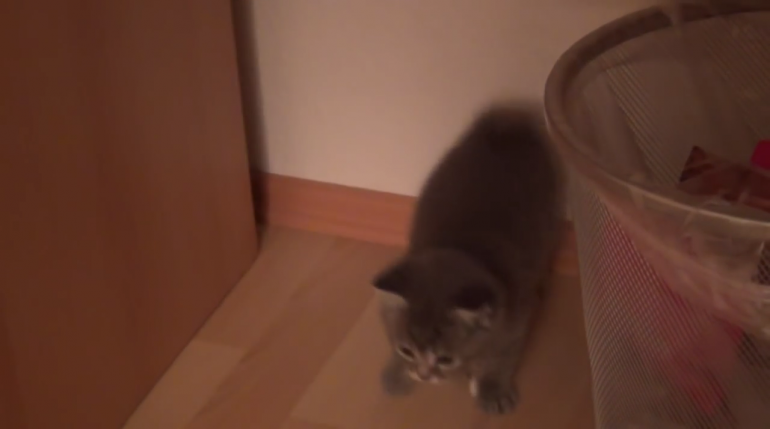 左の隅から、ふわふわもこもこの子猫ちゃんが出てきました!
