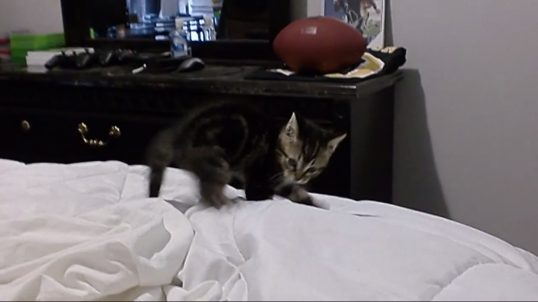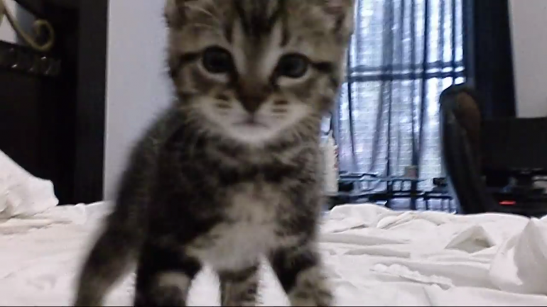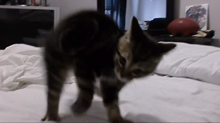 子猫ちゃんは一生懸命に威嚇をしているけど・・・