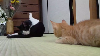 もちろんパンチを受けたこてつくんは何事もなかったかのように毛づくろい。