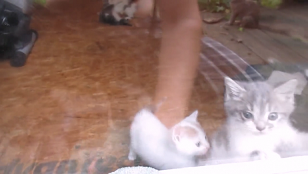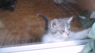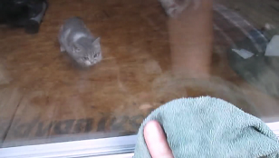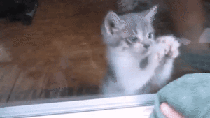 部屋の中の子ネコちゃんが窓に向かってダッシュ。