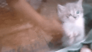 熱心にタオルを追いかけ続ける子ネコちゃん。