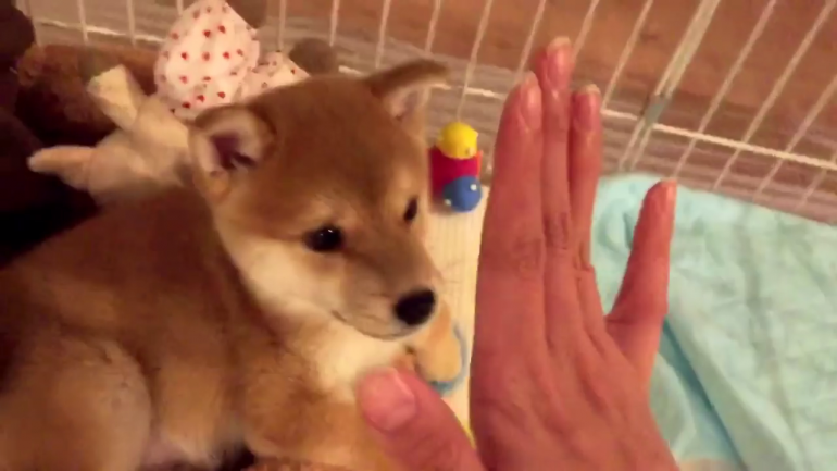 飼い主さん、こてつ君にタッチのリクエスト♪