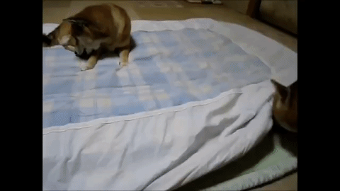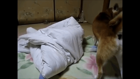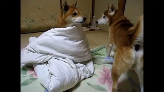 柴犬コンビによる愛嬌たっぷりの布団かくれんぼでした(人´ω`*)