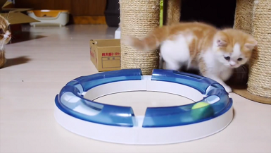 と、もう1匹のマンチカンちゃんもボールをコロコロ。