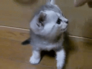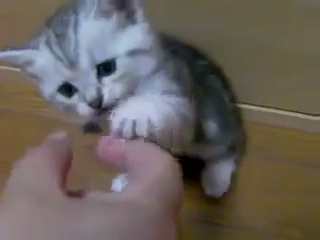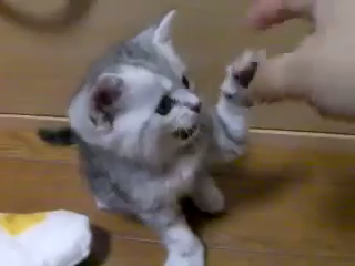 必死にパンチのタイミングを狙う子ネコちゃん。