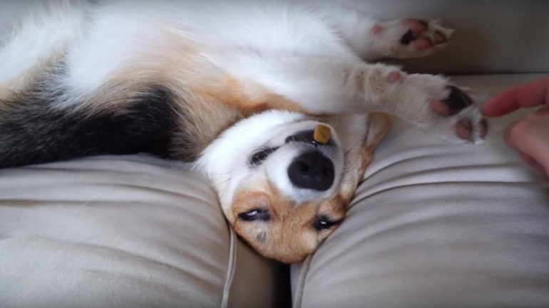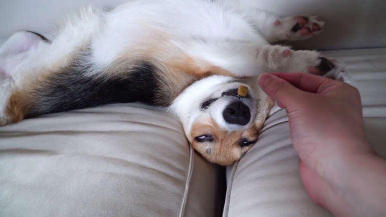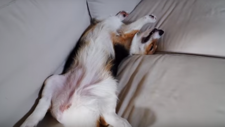 爆睡コーギーの寝起きドッキリ(?)映像でした♪