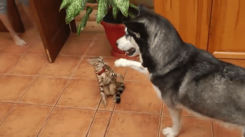 ハスキーくん「じゃ、ハイタッチしよう?はい、タッチ!」