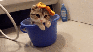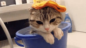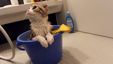 お気に入りのあひるちゃんと一緒に、今日もバケツでバスタイムを楽しむふくたん♡