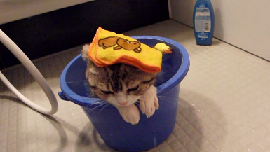 頭にはちょこんとタオルを乗せて、すっかり温泉気分のようです (*´ω`*)