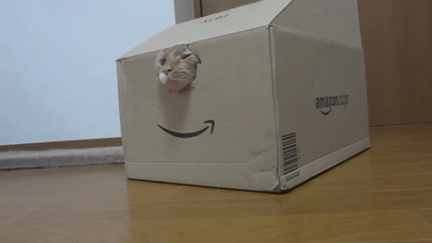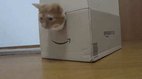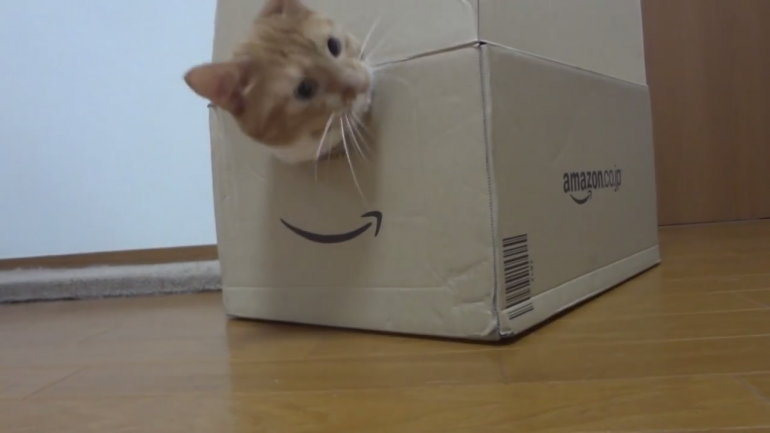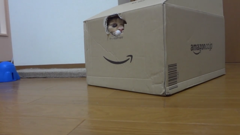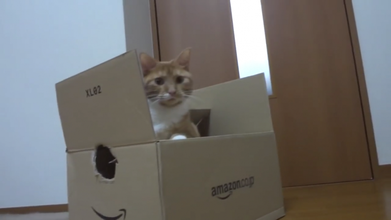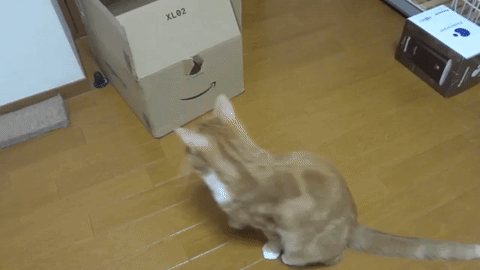 手頃な大きさの段ボール箱を見つけた茶トラちゃん。