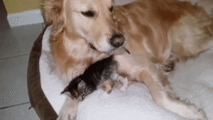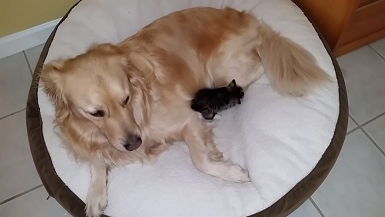 今度はフォスターの前足を枕にして、寝る準備を始めます (ρω・).。o