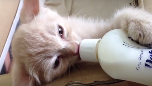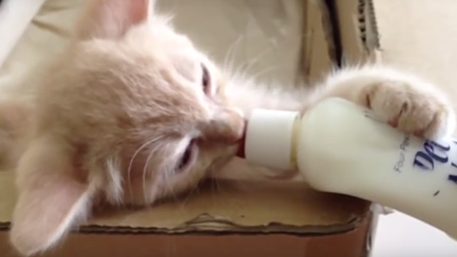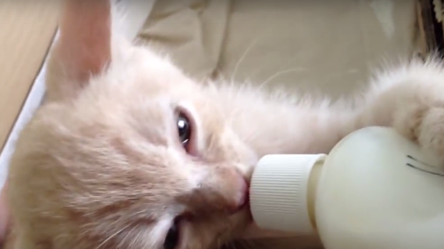 一生懸命ににミルクをのむ小さなネコちゃん。
