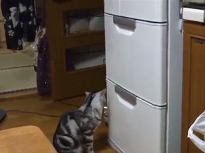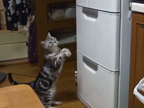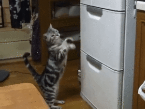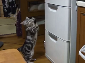 冷蔵庫の中に入っている猫缶をおねだりです♡