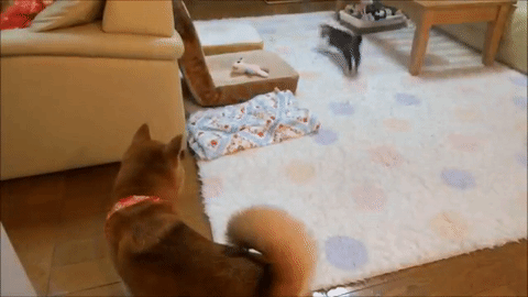 子猫と柴犬の仲良し(?!)コンビ、ずっと見ていたいですね♡