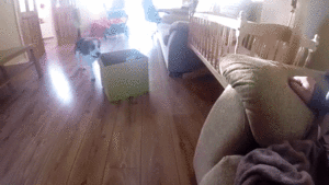 ワンちゃんはおもちゃ箱を引っ張り出してきて