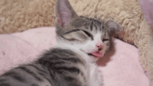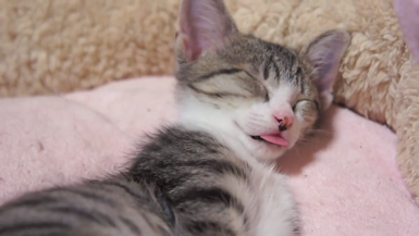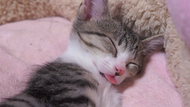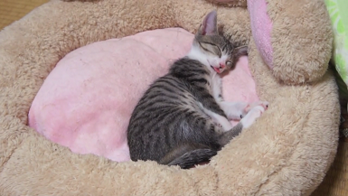 ぐっすり眠っている子ネコのおはぎちゃん。