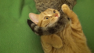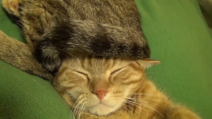 お昼寝中のにゃんこ親子・小侍郎とミシェル。