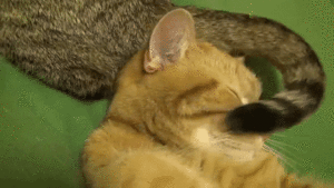 すると、ミシェルのしっぽがパタパタ…