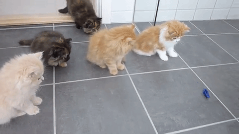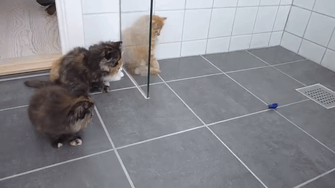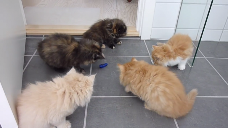 終始おっかなびっくりなニャンズたちのリアクション、かわいすぎてずっと見ていたいですね(*´ω`*)