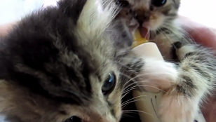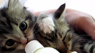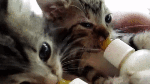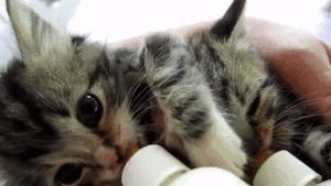 手前のねこちゃん、よほどおなかがすいていたのか…