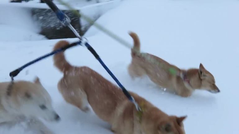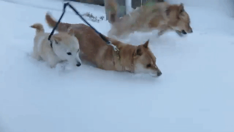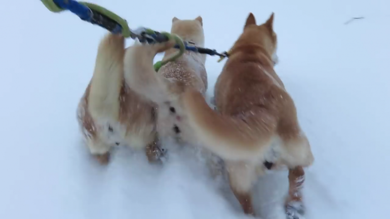 一面に広がる雪景色に、大興奮の柴犬たち♡