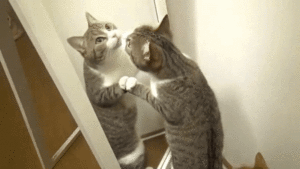 以上、鏡に映る自分をみたにゃんこたちの反応でした。