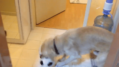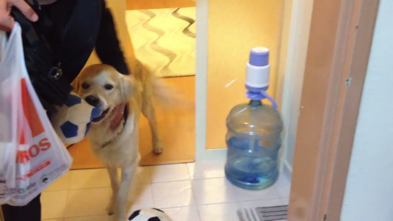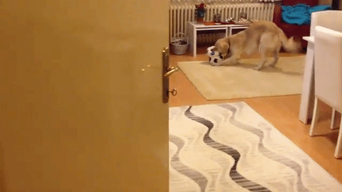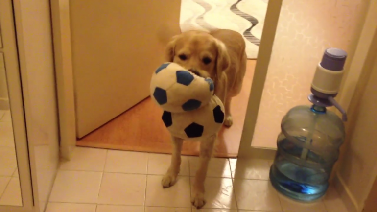 リビングに戻り、器用にボールをくわえると・・・
