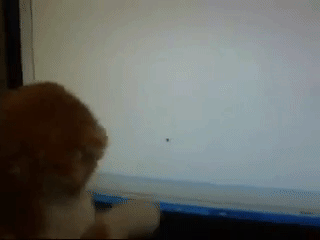 画面の中にある黒い点を見つめるおチビちゃん♡