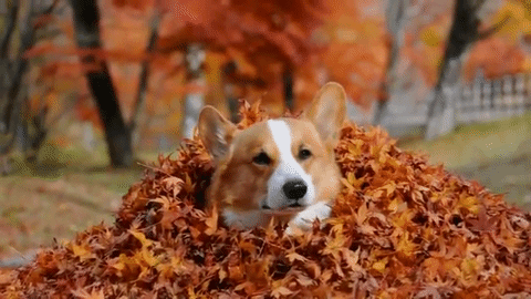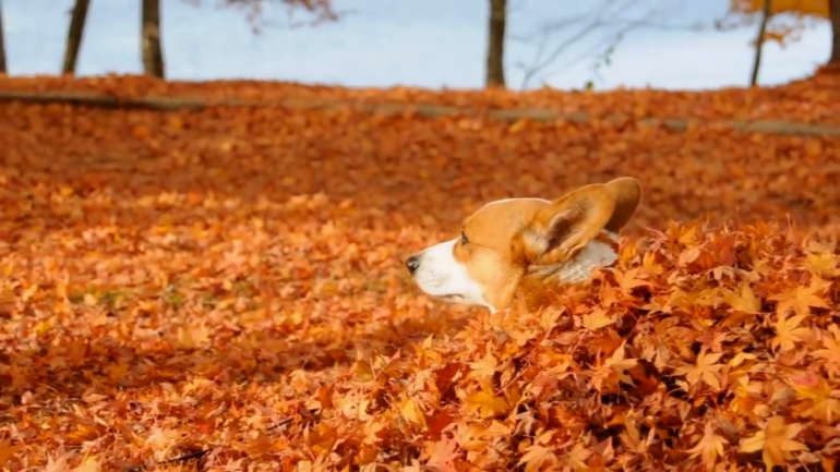 落ち葉のなかにすっぽり埋まるゴローくん!