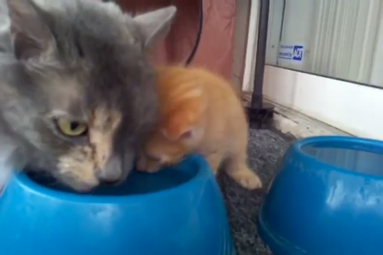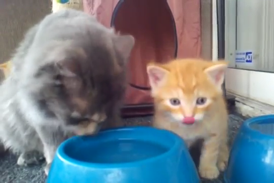 赤ちゃんにゃんこの初チャレンジなのでした(=゚ω゚)ノ