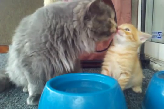 お口の周りをキレイにしてあげるママにゃんこ(♡´艸`)