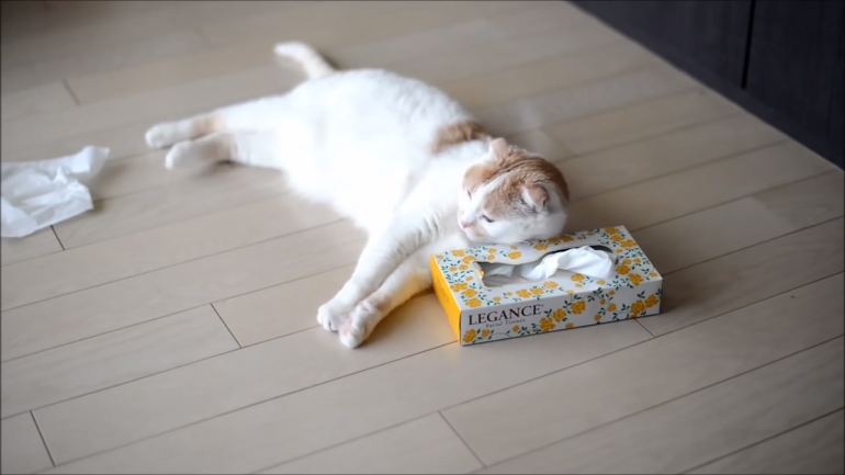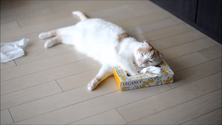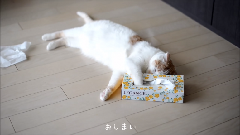 ティッシュ箱に手を入れて、再び夢の世界へ…♪