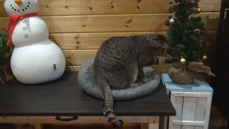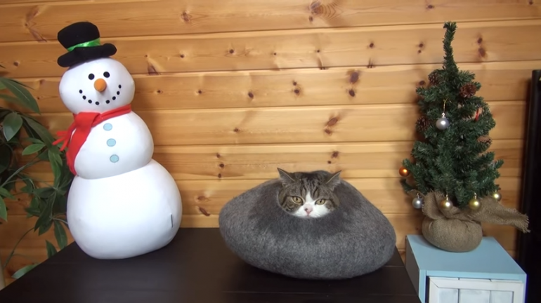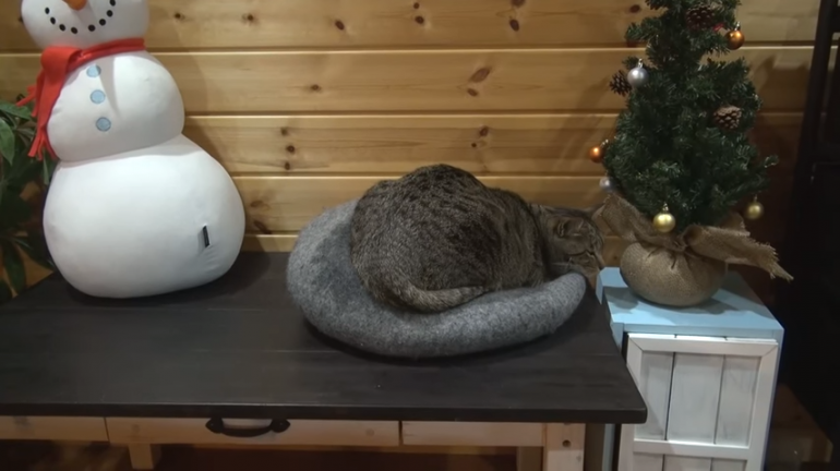 ねこ用ベッドの上でくつろぐはなちゃん。