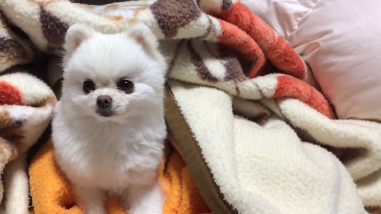 理想の居心地づくりに励むまっしろポメちゃんなのでした♡