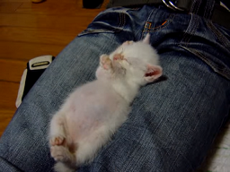 お腹もいっぱい満たされて、心地よい眠りにつく赤ちゃんにゃんこでした♡