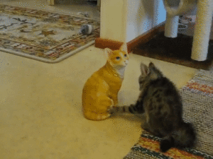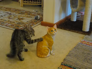 どうやら置物を"本物のネコ"だと思っているみたい♡