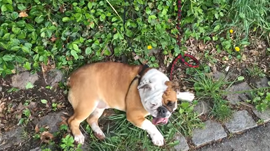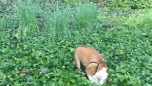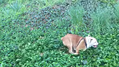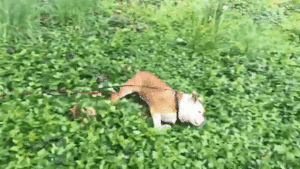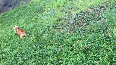 草が生い茂る丘をダッシュするジュジュちゃん。