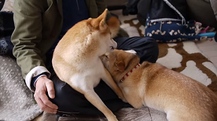 柴犬親子が再会する、微笑ましいひとコマなのでした~(*´ω`*)