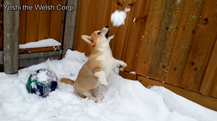 雪玉キャッチにハマってしまったヨシくん。