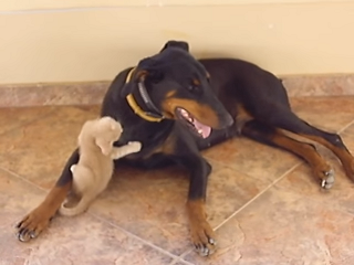 優しさあふれるドーベルマンの姿にホッコリですね♡