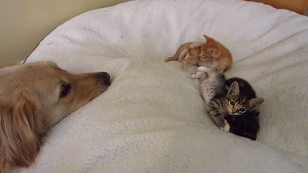 大きな愛に包まれて、のびのびとくつろぐ子猫たち。