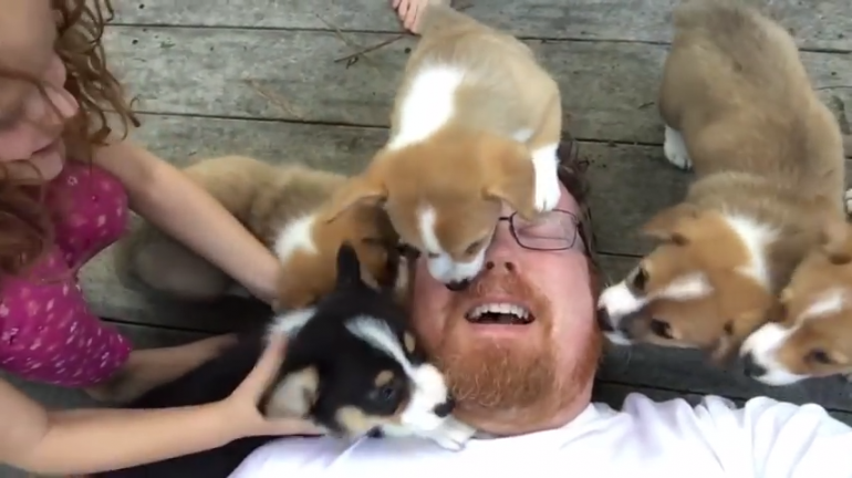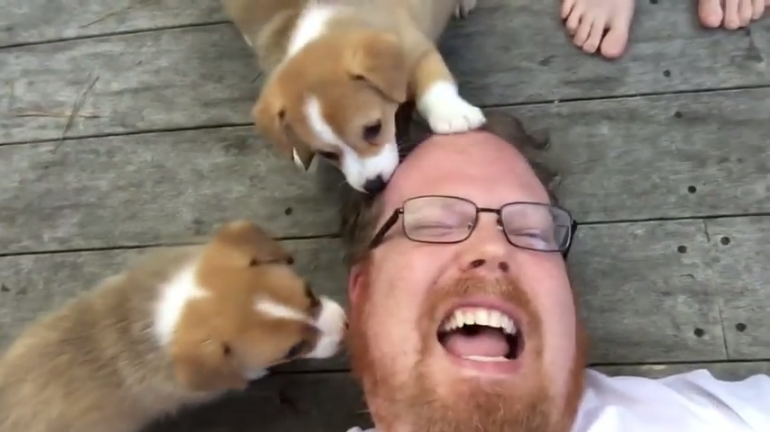 以上、コーギーとご主人の幸せオーラ全開なひとコマなのでした~♪