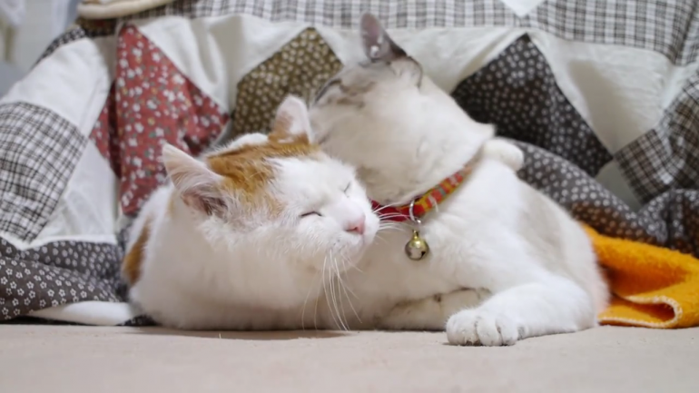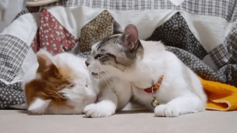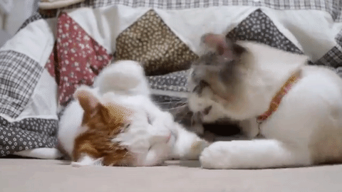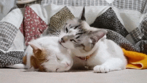 目覚めたあとは、なかよくお互いの体を毛づくろい(*´ω`*)
